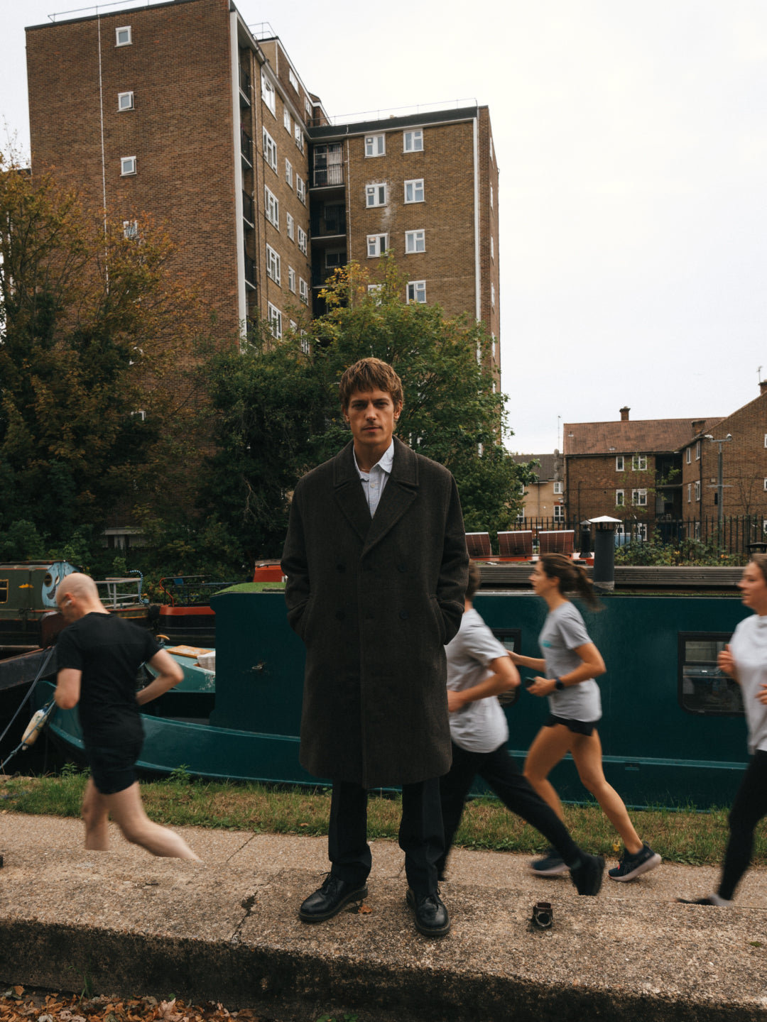 Zac wears the Magnus coat, the Shelly poplin shirt, Aubyn pleated trousers and the Wilde fluffy knit.