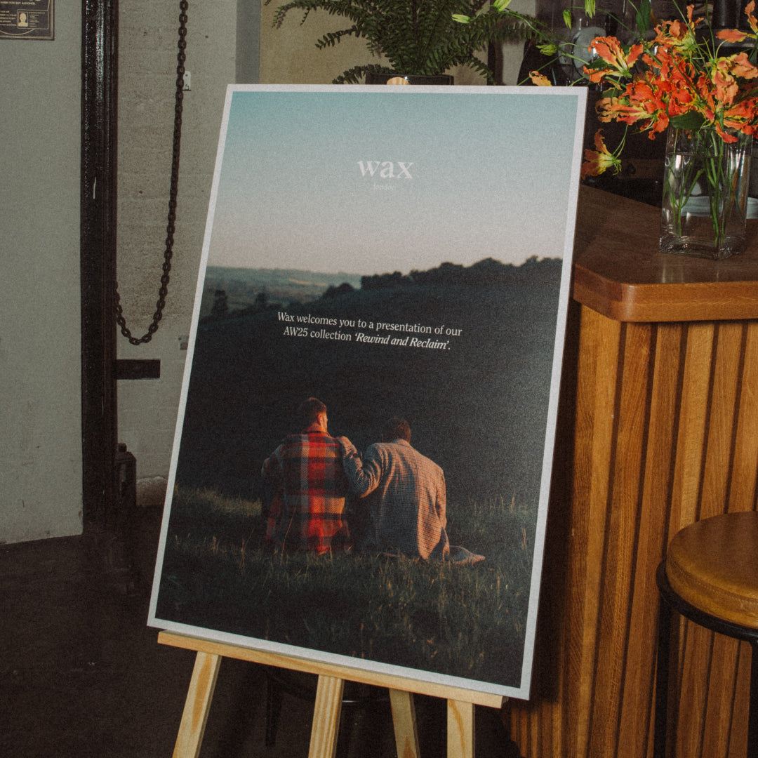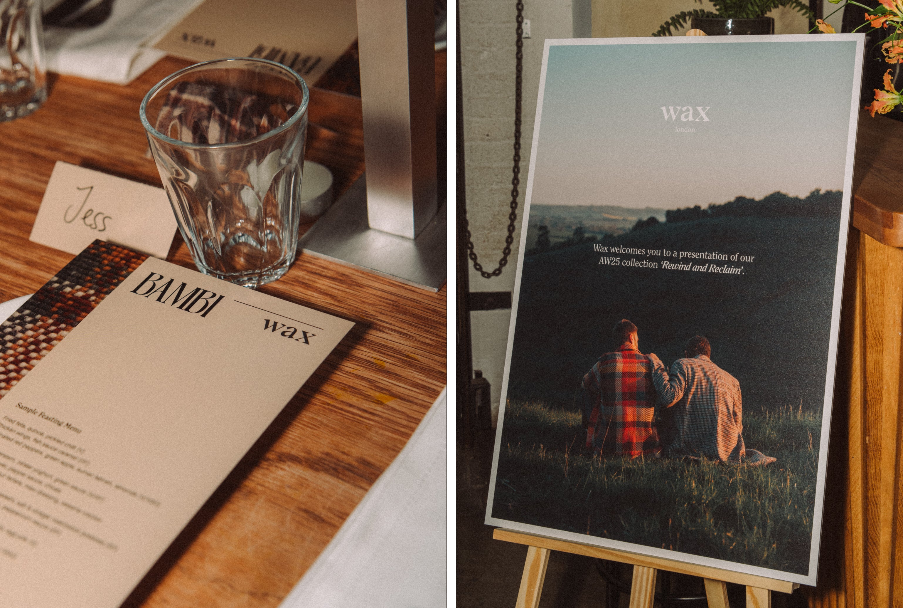 Throughout the evening, guests were treated to a preview of our upcoming men's outerwear, seasonal knits, textured overshirts and refined trousers - cornerstones of the AW25 collection that explore fabric, form, and function through a distinctly Wax lens. As dinner was served and glasses raised, we also debuted our AW25 hero film, offering a glimpse into the mood and movement behind the season. With candlelight, great company, and the energy that defines Wax, the evening set the tone for what’s to come.
