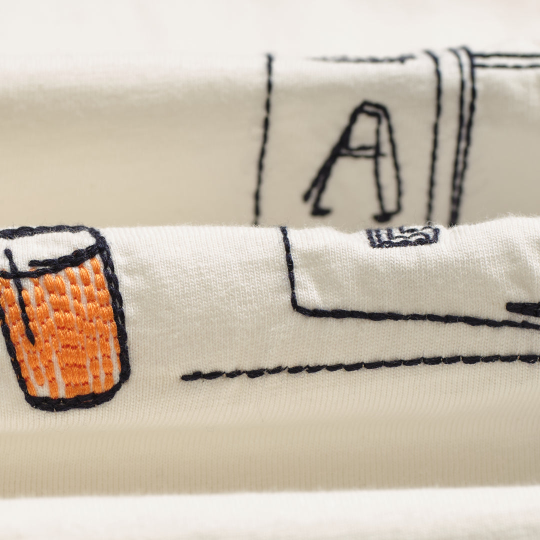 A clean base with a playful point of view, this Milton t-shirt is brought to life through embroidered, London-inspired illustrations from our design team. The scattered, hand-drawn motifs give it an easy character, adding subtle detail without taking away from its relaxed feel.