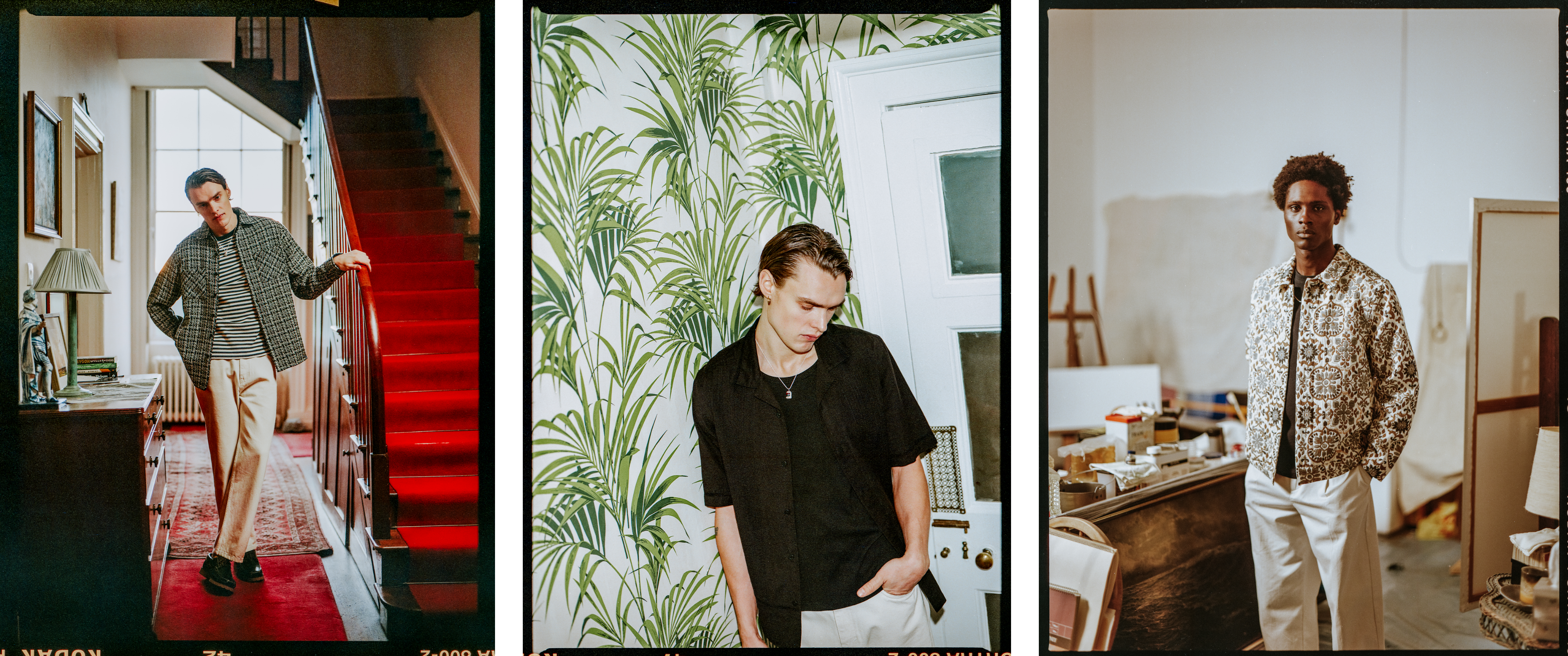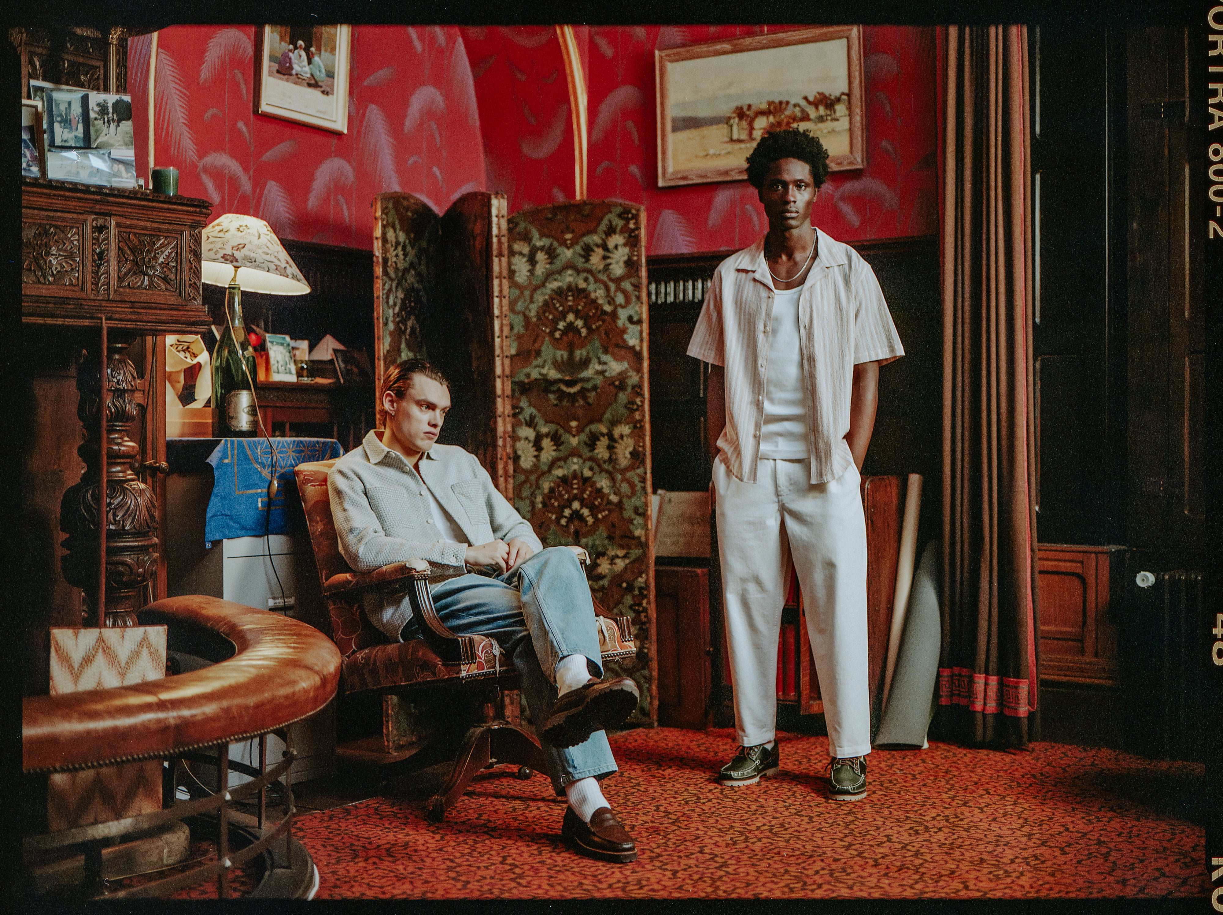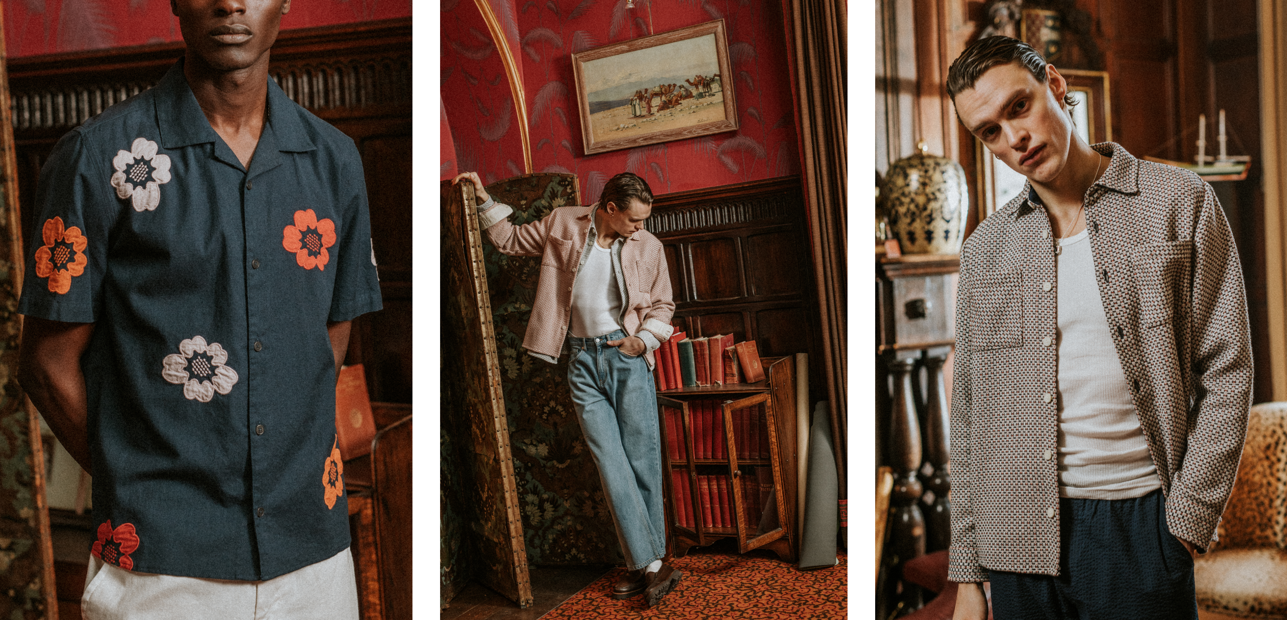 The campaign is a surreal depiction of how the clothes “Come Together”. An acerbic tale of wit and craft. We see brand founder Tom swiping fabrics from their place, coalescing in a workshop surrounded by the collection. Embroidery, Pointelle, Crochet, Seersucker and Linen in light pastel tones take centre stage throughout while punchy statements of reds and blues punctuate the collection.