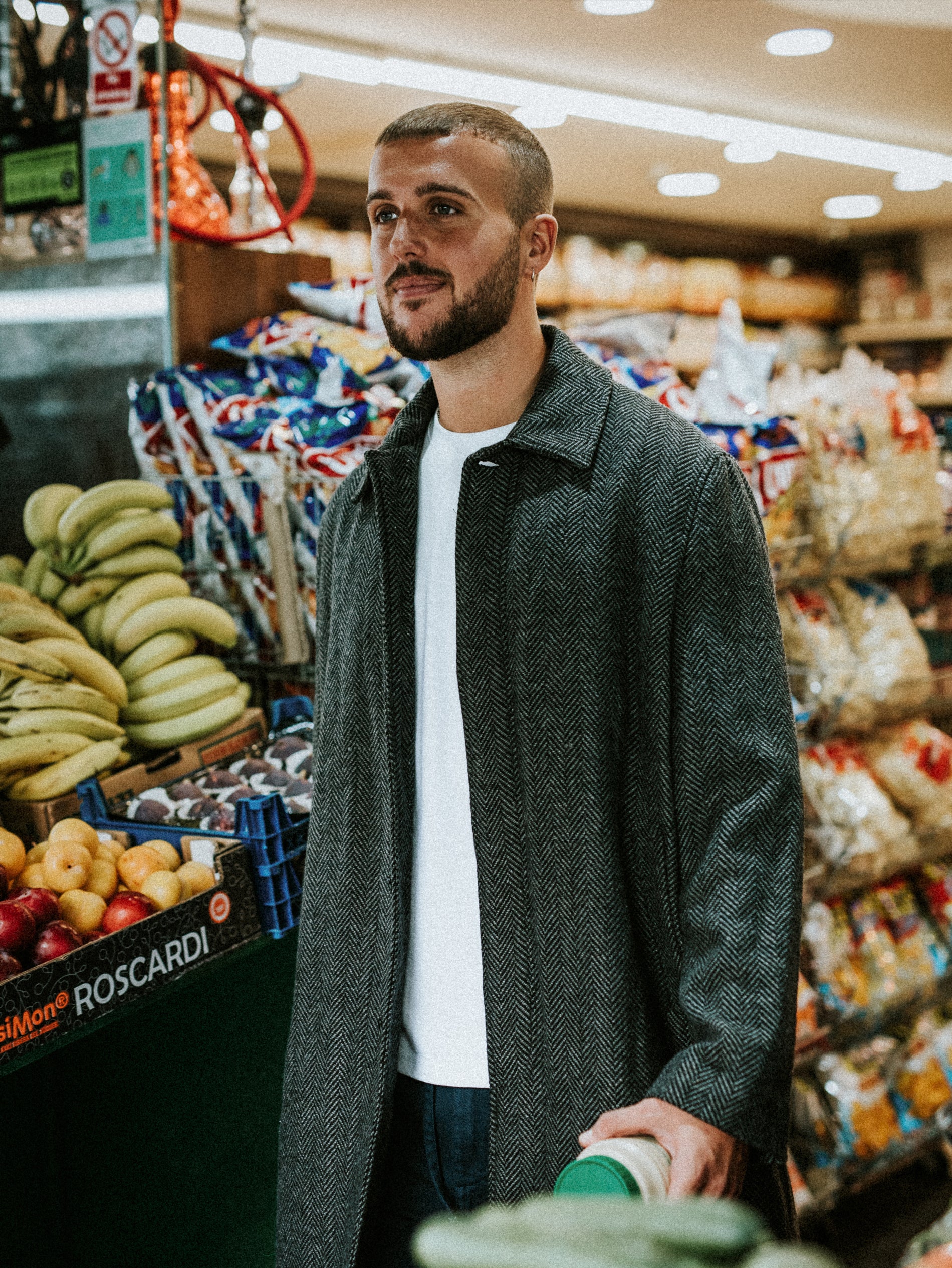 Alfie wears Whiting Overshirt Marine Beatnik & Dean T-Shirt Textured White