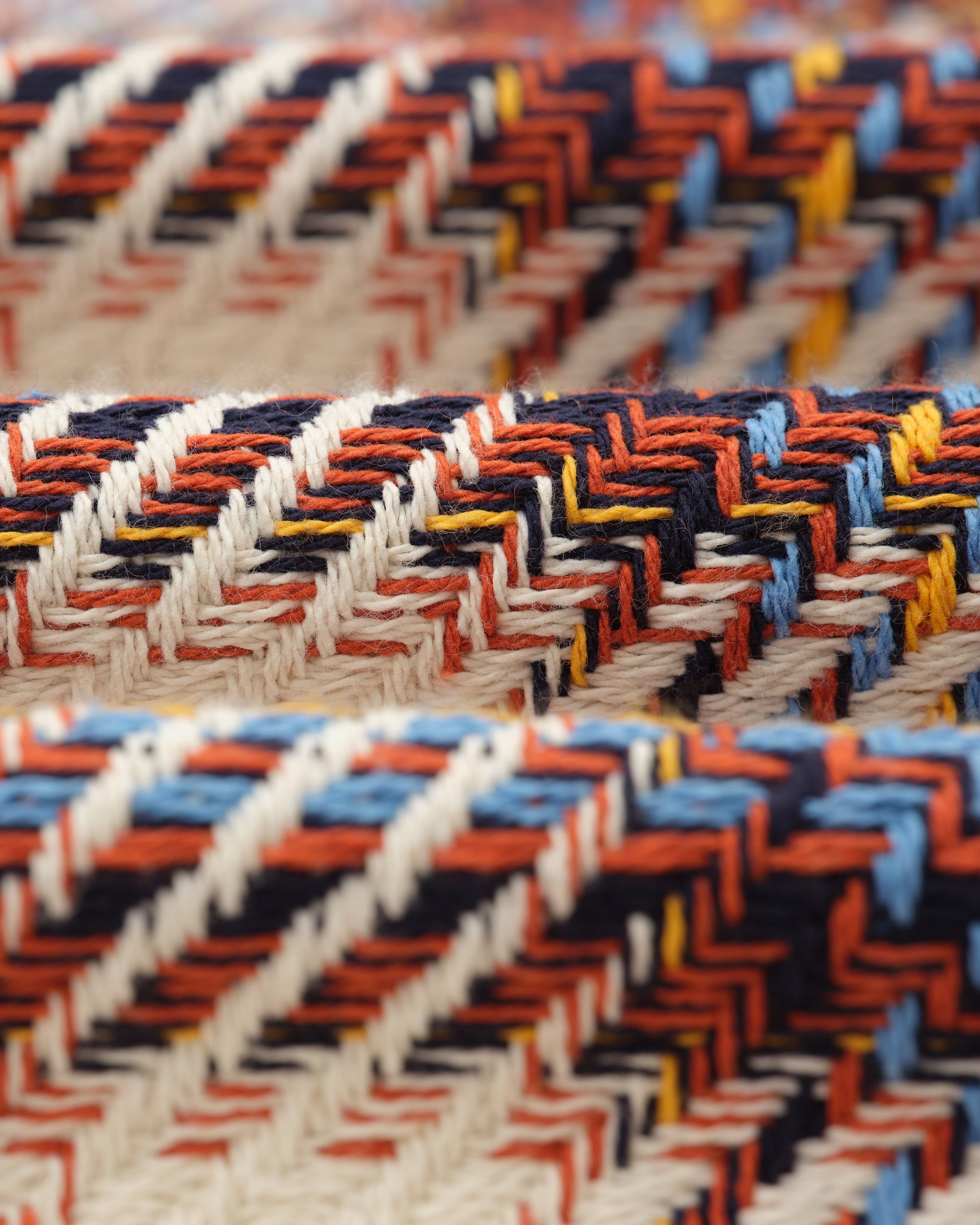 @bruceherbelinearle wears our Iggy - Red And Blue Spin Jacquard Jacket, our Prim - Ecru Open Knit Vest and our Kurt - Red And Blue Spin Jacquard Trousers
