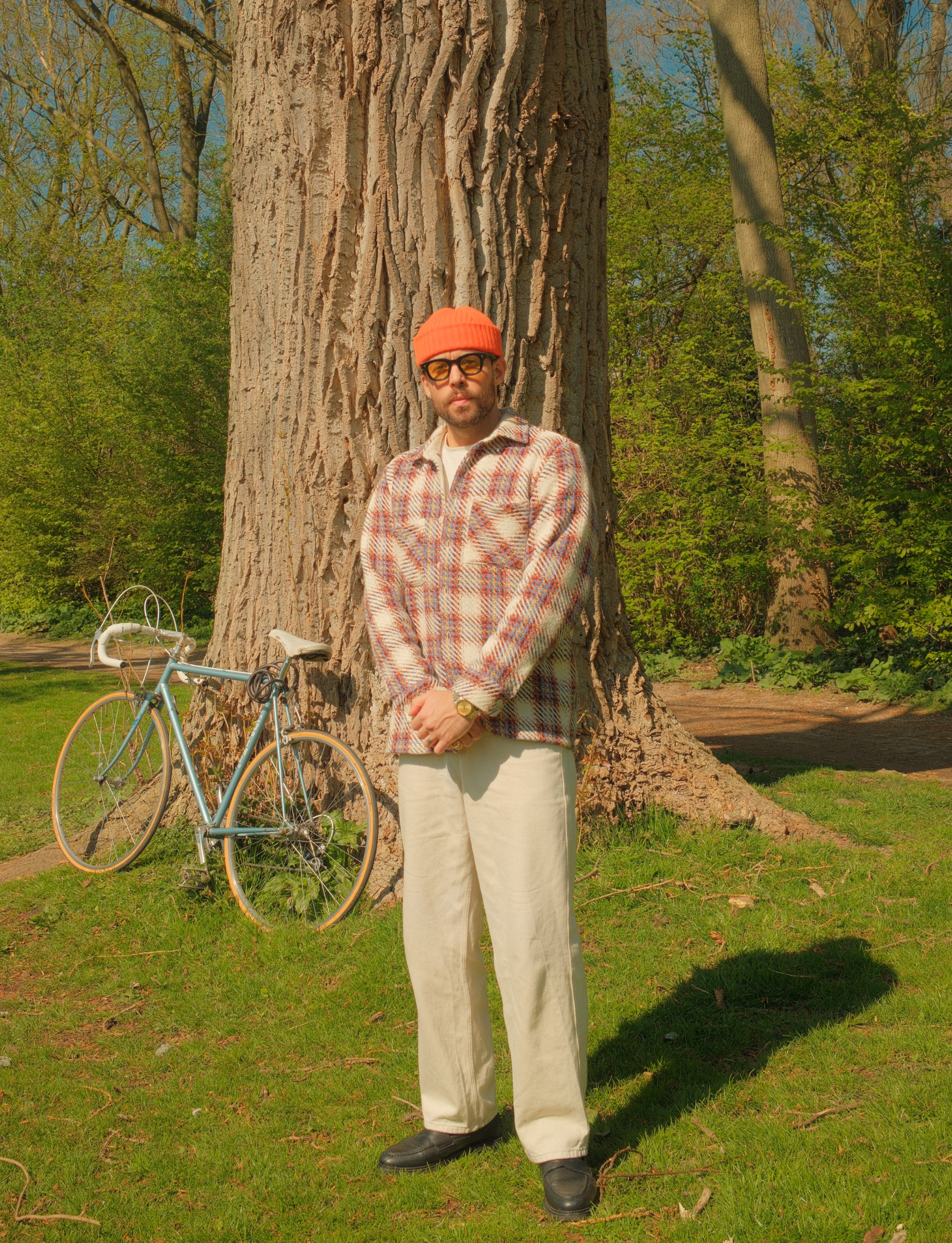 @tonosimone wears our Whiting - Ecru And Multicolour Hutton Check Overshirt and our Felix - Ecru Loose Fit Denim Jeans