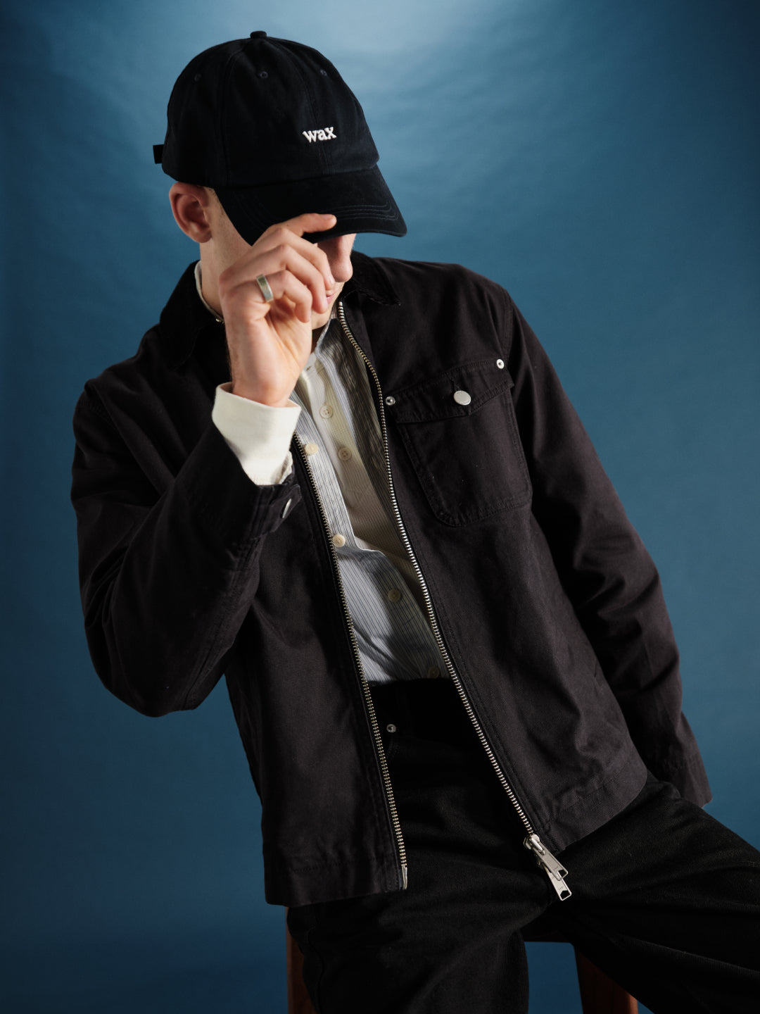 [Left] Mason - Black Canvas Work Jacket, Abingdon - Blue Preppy Stripe Shirt, Spencer - Navy Cotton Sports Cap