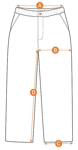 Measure straight across the garment from one side seam to the other side seam. As the waist is elasticated, take the measurement while relaxed.