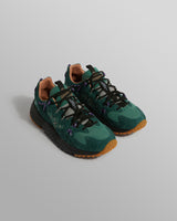 Flower Mountain’s YAMABUSHI silhouette encapsulates the Japanese label’s outdoor spirit. This green bottle pair features an eco suede and nylon upper, with flower-shaped perforations and reinforced eyelets. The removable, antibacterial natural cork insole and toothed tread ensure comfort with every step.