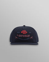 Grace your head with the Farrell - our take on the classic trucker cap. Designed with a flat brim and 5-panel construction, it’s crafted from 100% cotton in this navy colourway and features an embroidered Wax logo design.