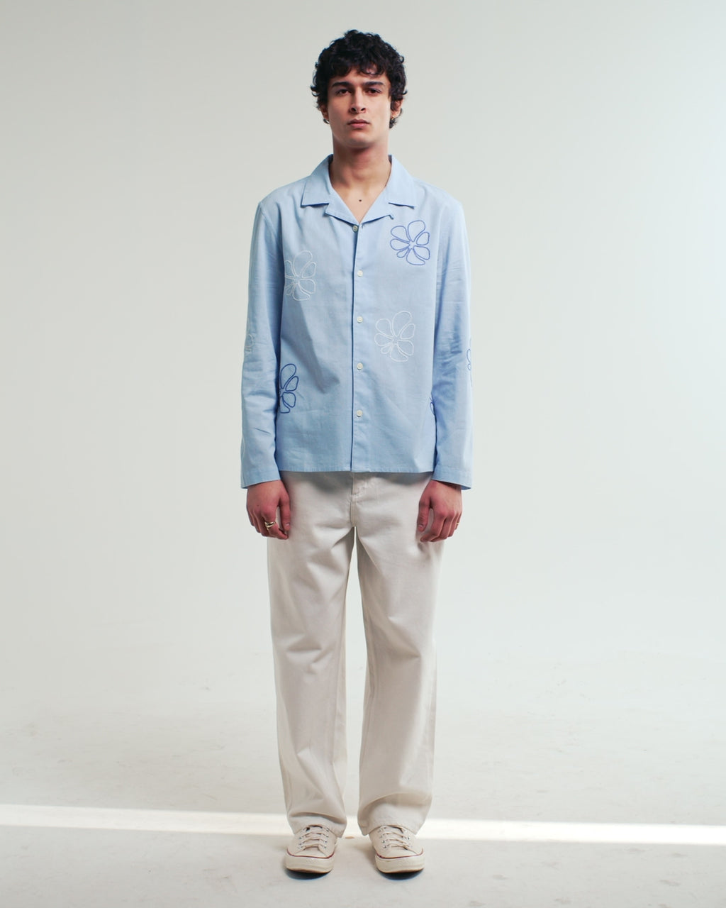 The Corey is crafted from a breathable cotton-flax blend with a soft, natural handle. It’s finished with a new seasonal embroidery technique, detailed with floral doodle design for subtle texture and depth.
