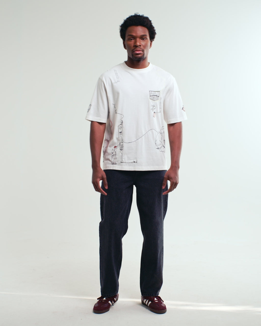 For when comfort comes first. The Milton is crafted from 220gsm compact organic cotton for a substantial feel and smooth, refined finish. Finished with embroidered doodles and illustrations celebrating life in London.